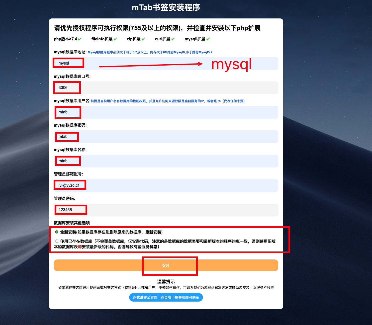 MYSQL_PASSWORD: mtab #默认数据库密码