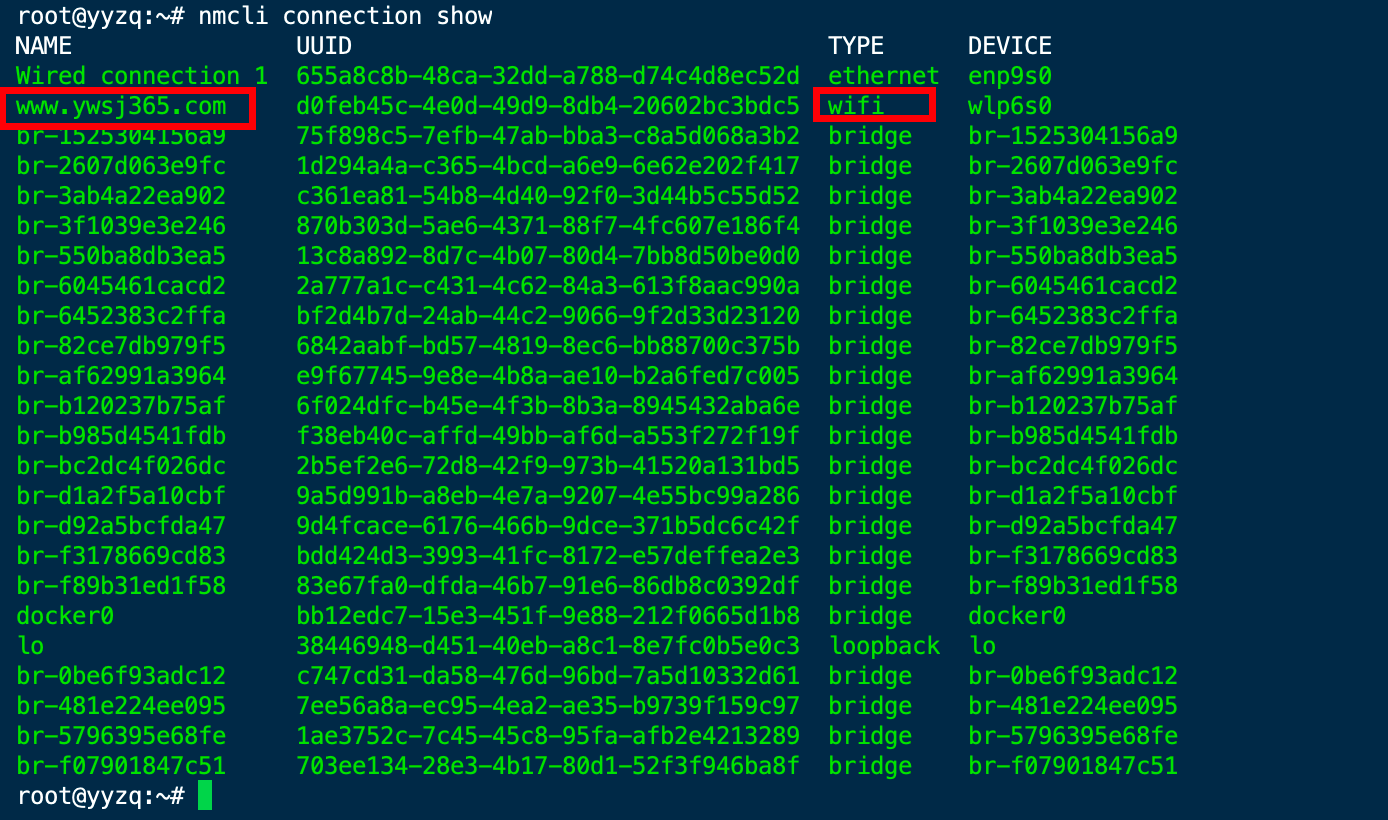 要忘记一个WiFi连接,你可以使用 nmcli 命令来删除它的连接配置。假设你想忘记名为 www.ywsj365.com 的WiFi连接,可以使用以下命令: