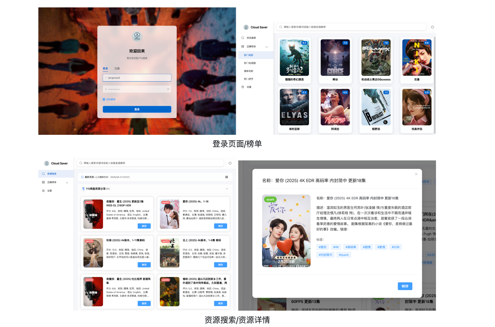 关于资源搜索类的项目之前给大家推荐过爱盘的搭建教程,那么今天在来分享一个类似的项目-CloudSaver